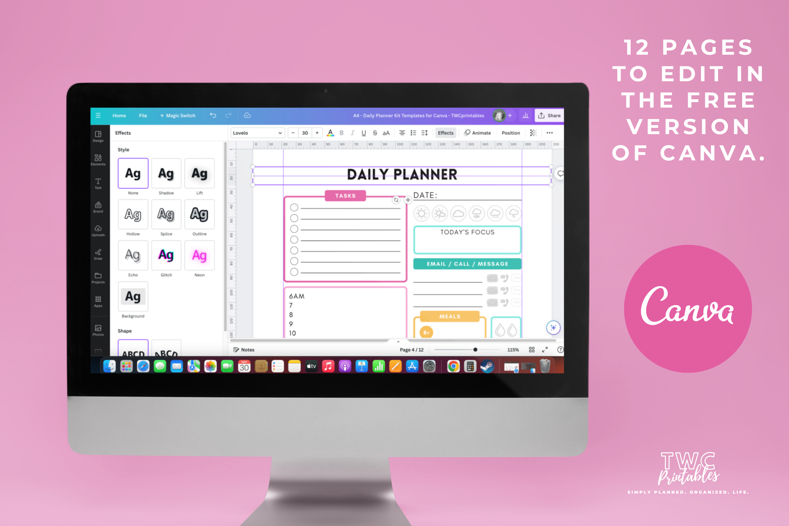 The Daily Planner Kit Templates for Canva contain 12 pages to play around with.